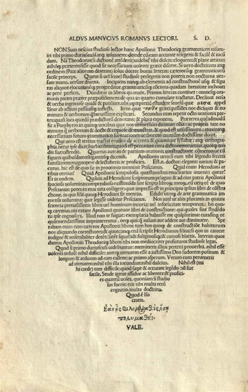 Θεόδωρος Γαζῆς. Γραμματικὴ Εἰσαγωγὴ..., Περὶ μηνῶν. Βίος Ἀπολλωνίου Ἀλεξανδρέως τοῦ γραμματικοῦ. Ἀπολλωνίου περὶ συντάξεως. Ἡρωδιανοῦ περὶ τῶν ἀριθμῶν [ἑλληνικὸ κείμενο μὲ λατινικὸ τίτλο], Βενετία, Ἄλδος Μανούτιος, 25 Δεκεμβρίου 1495.