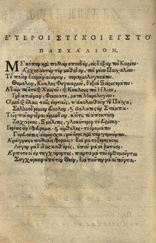 Ματθαῖος Τζιγάλας (Κιγάλας). Συνταγμάτιον περιέχον Κανόνας τε καὶ Εὐχὰς ἱκετηρίους... προσετέθη καὶ Πασχάλιον αἰώνιον..., Βενετία, Νικόλαος Σάρος, 1688.