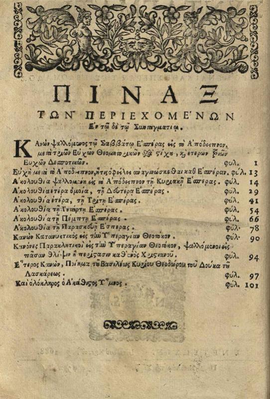 Ματθαῖος Τζιγάλας (Κιγάλας). Συνταγμάτιον περιέχον Κανόνας τε καὶ Εὐχὰς ἱκετηρίους... προσετέθη καὶ Πασχάλιον αἰώνιον..., Βενετία, Νικόλαος Σάρος, 1688.