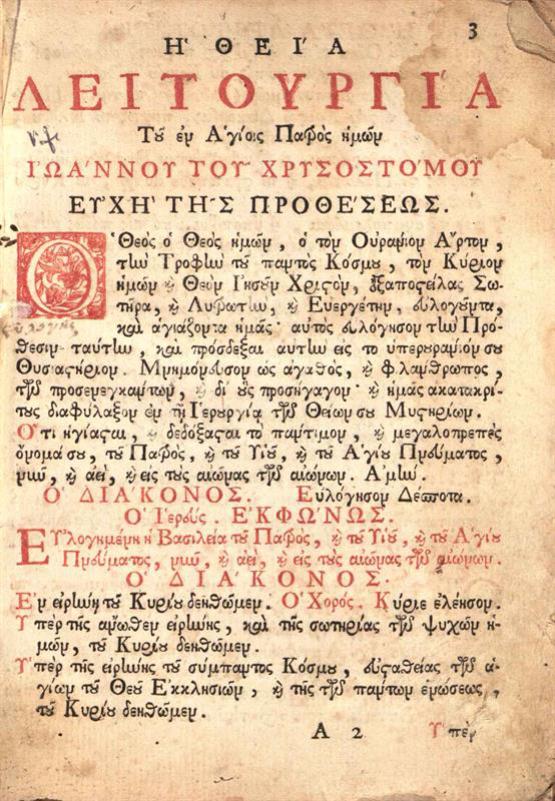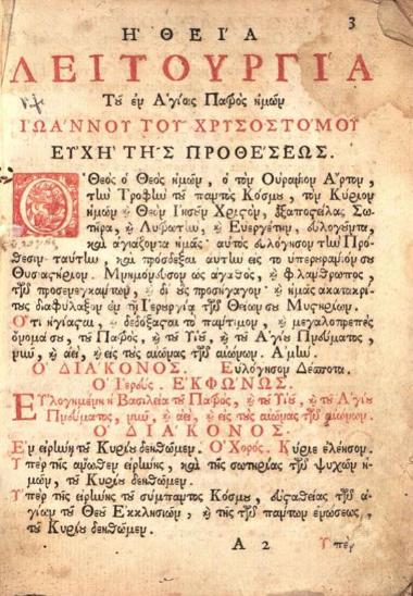 Αἱ Θεῖαι καὶ Ἱεραὶ Λειτουργίαι..., Βενετία, Νικόλαος Σάρος, 1751.