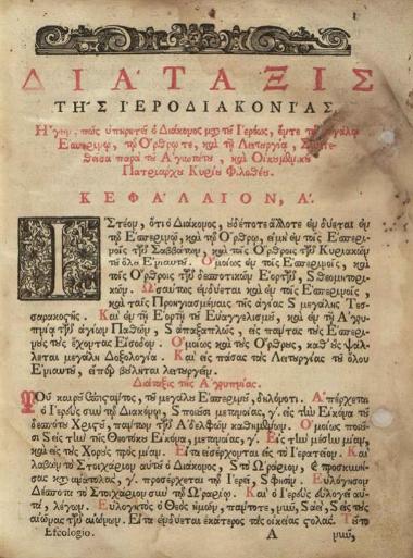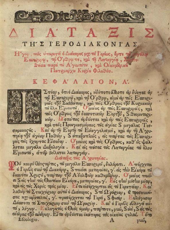 Εὐχολόγιον σὺν Θεῷ ἁγίῳ... διορθωθὲν παρὰ Ἀλεξάνδρου Καγκελλαρίου..., Βενετία, Νικόλαος Σάρος, 1737.