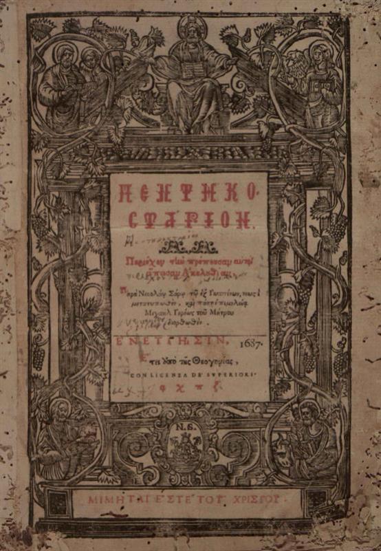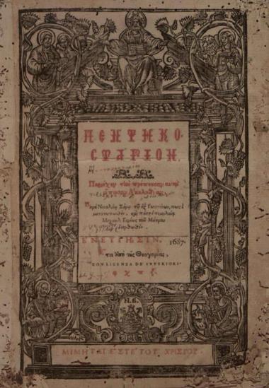 Πεντηκοστάριον, περιέχον τὴν πρέπουσαν αὐτῷ ἅπασαν ἀκολουθίαν... ἐπιμελείᾳ Μιχαὴλ Ἱερέως τοῦ Μήτρου διορθωθὲν..., Βενετία, Νικόλαος Σάρος, 1687.