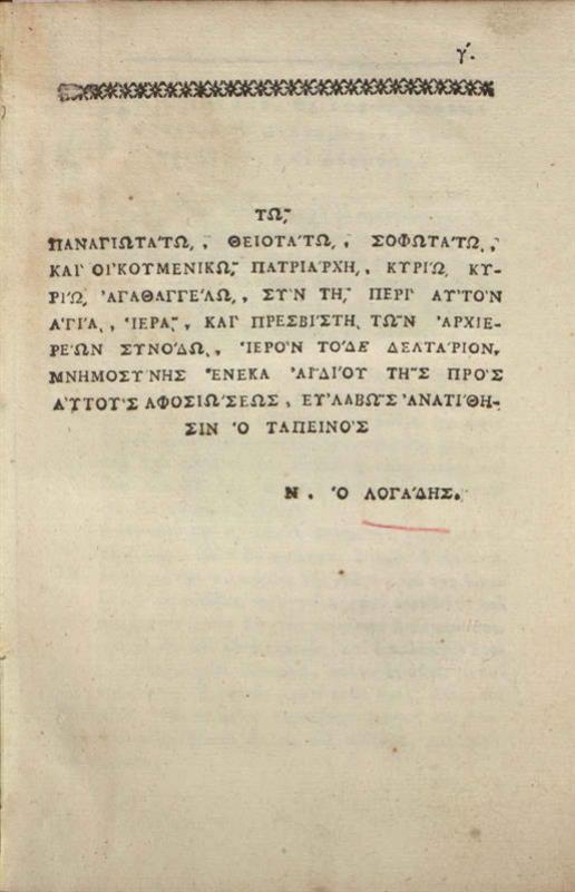 - [Δημήτριος Καταρτζής], Παράλληλον φιλοσοφίας καὶ χριστιανισμοῦ, ἀθεϊσμοῦ, καὶ δεισιδαιμονίας, ἤτοι ἐγκώμιον τοῦ ἀληθινοῦ φιλοσόφου, μακαρισμὸς τοῦ ὀρθόδοξου Χριστιανοῦ, ψόγος τοῦ ἀθέου, ταλανισμὸς τοῦ δεισιδαίμονος... καί τις ἐπιστολὴ... Εὐγενίου, καὶ... ὠδάριον ἠθικὸν Ν. Τοῦ Λογάδου..., Κωνσταντινούπολη, Πατριαρχικὸ Τυπογραφεῖο, 1830.