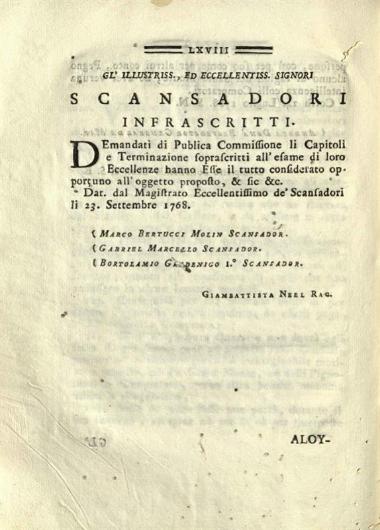 Regole e Leggi per il buon governo del Santo Monte di Pietà di Corfu stabilite nel Risorgimento di Esso pio Luoco dal N.H.f. Andrea Dona Proveditor General Da Mar..., Βενετία, Ἀντώνιος Πινέλλι, 1768.