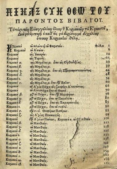 Ἀγάπιος Λάνδος. Βιβλίον καλούμενον Κυριακοδρόμιον ἤγουν Διδαχαὶ καὶ Ὁμιλίαι..., Βενετία, Νικόλαος Σάρος, 1720.