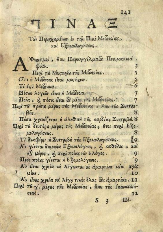 Χρύσανθος Νοταρᾶς. Διδασκαλία ὠφέλιμος περὶ Μετανοίας καὶ Ἐξομολογήσεως..., Βενετία, Νικόλαος Σάρος, 1724.