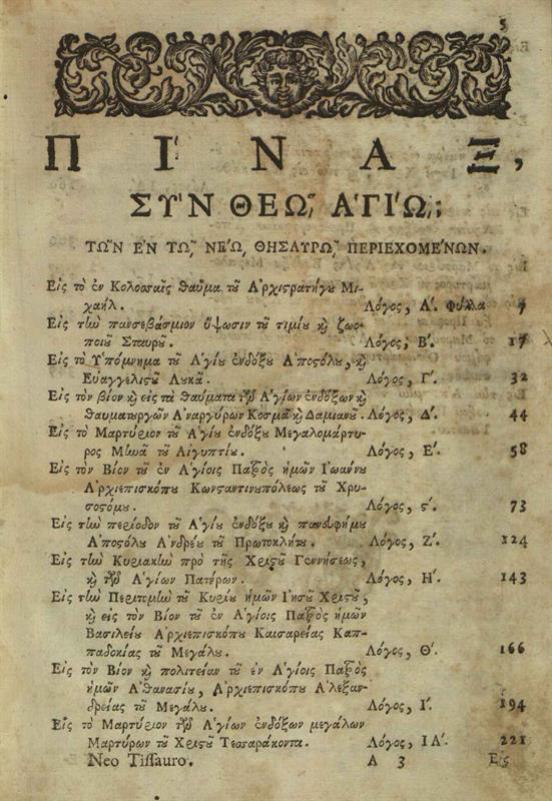 Νέος Θησαυρὸς..., Βενετία, Νικόλαος Σάρος, 1750.