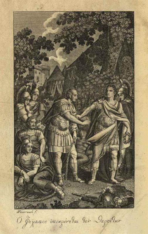 Βαρθολομαῖος ἀββᾶς (J.-J. Barthélemy). Περιήγησις τοῦ Νέου Ἀναχάρσιδος... εἰς τὴν καθ᾽ ἡμᾶς διάλεκτον... παρὰ Χρυσοβέργη Κουροπαλάτου.., Βιέννη, Ἰωάννης Σνείρερος, τ. Α´-Ε´, Ζ´, 1819.