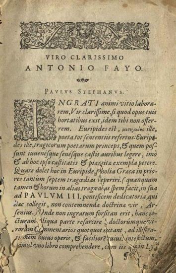 Εὐριπίδης. Εὐριπίδου Τραγῳδιῶν ὅσα σωζονται..., Cum Latina Gulielmi Canteri interpretatione. Σχόλια... συλλεγέντα... παρὰ Ἀρσενίου... Scholia... Aemilii Porti... Annotationes... [Γενεύη], Παῦλος Στέφανος, 1602.