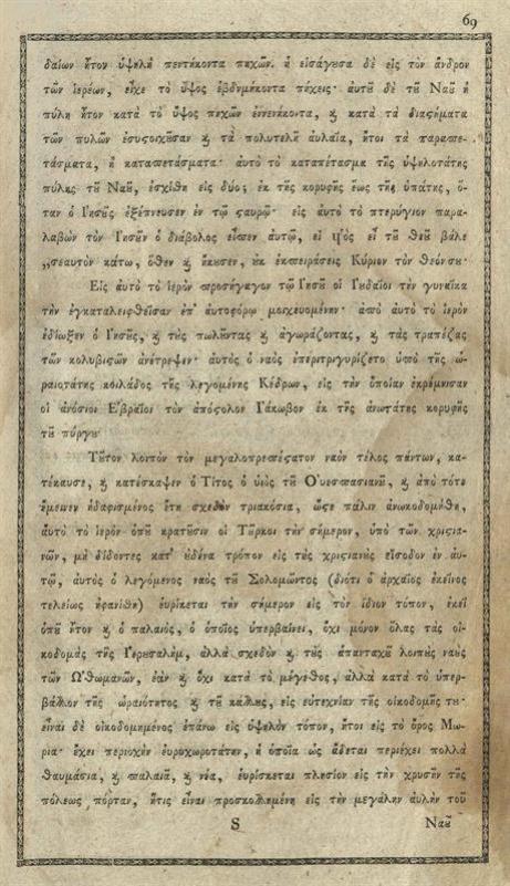 Χρύσανθος ἐκ Προύσης. Προσκυνητάριον τῆς ἁγίας πόλεως Ἱερουσαλὴμ καὶ πάσης Παλαιστίνης συντεθὲν μὲν παρὰ τοῦ Πανοσιωλογιωτάτου Ἁγίου Καμαράση..., Βιέννη, Ἰωάννα Σχραίμβλ, 1807.