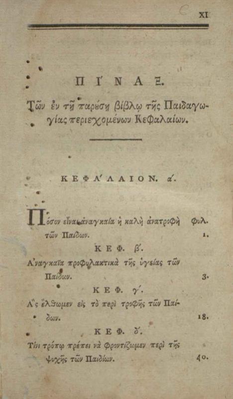 Γαβριὴλ Καλλονᾶς. Παιδαγωγία περιέχουσα πάνυ ὠφελίμους νουθεσίας καὶ... κανόνας περὶ τοῦ πῶς δεῖ ἀνατρέφεσθαι τὰ Παιδία..., Βιέννη, Φ.Α. Σχραίμβλ, 1800.