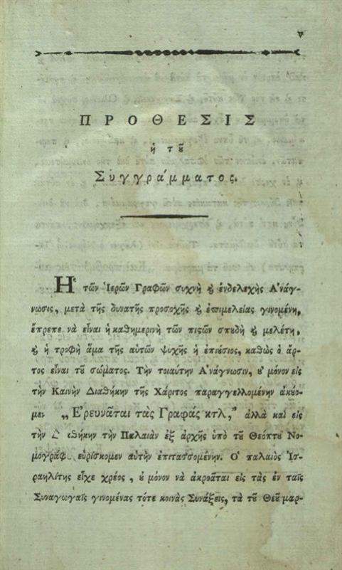 Εὐγένιος Βούλγαρης. Ἀδολεσχία Φιλόθεος ἤτοι ἐκ τῆς ἀναγνώσεως τῆς Ἱερᾶς Μωσαϊκῆς Πεντατεύχου Βίβλου..., τ. Α´ [Βιέννη, Φ.Α. Σχραίμβλ], 1801.