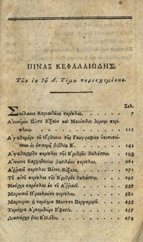 [Στέφανος Οἰκονόμος, ἐπιμέλεια]. Συλλογῆς τῶν ἐν ἐπιτομῇ τοῖς πάλαι γεωγραφηθέντων..., τ. Α´, Βιέννη, Σχραιμβλικὴ Τυπογραφία, 1807, τ. Β´ [Τυπογραφία Ἀντωνίου Σχμιδίου] 1808.