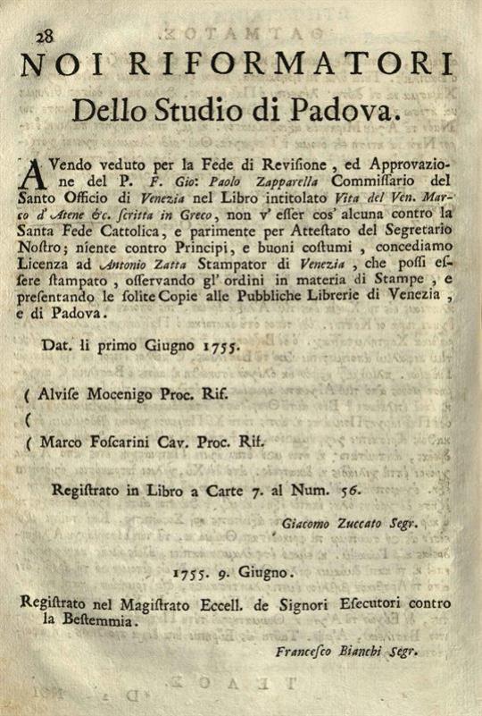 Ἀκολουθία... Χριστοδούλου..., Βενετία, Ἀντώνιος Τζάτας, 1755.