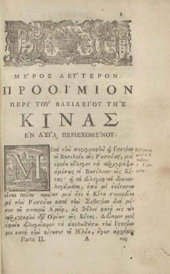 Γεώργιος Κωνσταντίνου. Ἱστορία τοῦ Βασιλείου τῆς Κίνας... τόμος δεύτερος Τῆς παγκοσμίου Ἱστορίας..., Βενετία, Ἀντώνιος Τζάττας, 1763.
