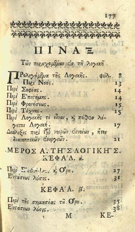 Βικέντιος Δαμωδός. Ἐπίτομος Λογικὴ κατ᾽ Ἀριστοτέλην καὶ Τέχνη ῾Ρητορική...., Βενετία, Ἀντώνιος Τζάτας, 1759.