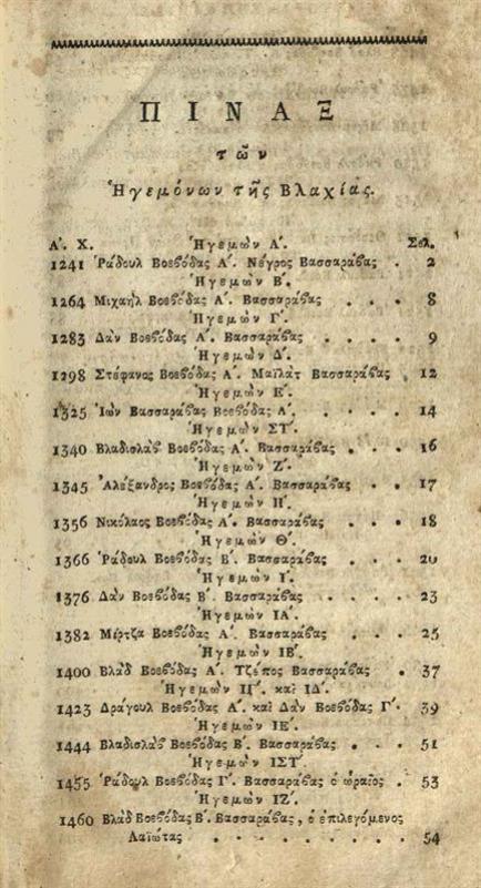 - Διονύσιος Φωτεινός. Ἱστορία τῆς πάλαι Δακίας, τὰ νῦν Τρανσιλβανίας, Βλαχίας, καὶ Μολδαβίας.., Βιέννη, Ἰωάν. Βαρθολ. Σβέκιος, τ. Α´, Β´, 1818, τ. Γ´, 1819.