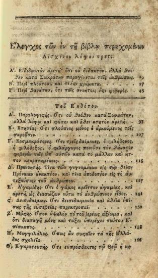Αἰσχίνης ὁ Σωκρατικός, Αἰσχίνου τοῦ Σωκρατικοῦ Διάλογοι τρεῖς ἐπεξεργασθέντες καὶ ἐκδοθέντες ὑπὸ Νεοφύτου Δούκα, Βιέννη, Ἐκ τῆς τυπογραφίας Ἰωάν. Βαρθ. Τζβεκίου, 1814.