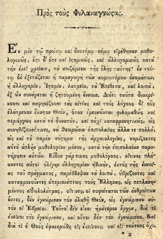 - Ἀθανάσιος Σταγειρίτης. Ὠγυγία ἢ Ἀρχαιολογία περιέχουσα τῶν ἀρχαιοτάτων ἐθνῶν, ἢ τῶν δύο πρώτων αἰώνων τοῦ ἀδήλου καὶ ἡρωϊκοῦ, τὴν ἱστορίαν, τὰς κοσμογονίας, θεογονίας..., Βιέννη, Ἰωάν. Βαρθολομαῖος Τσβέκιος, τ. Α´, 1815, τ. Β´, 1816, τ. Γ´, 1817, τ. Δ´, 1818, τ. Ε´, 1820.