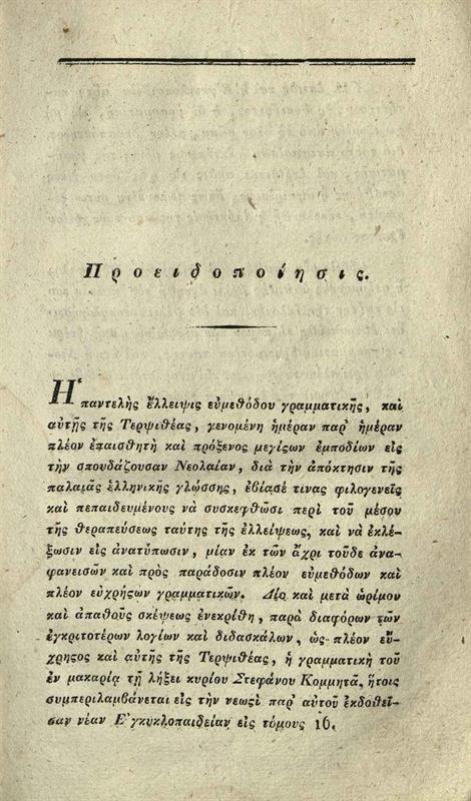 Στέφανος Κομμητᾶς. Παιδαγωγικὰ Μαθήματα... Ἑλληνικὴ Γραμματικὴ..., Πέστη, Τράττνερ καὶ Κάρολη, 1828.