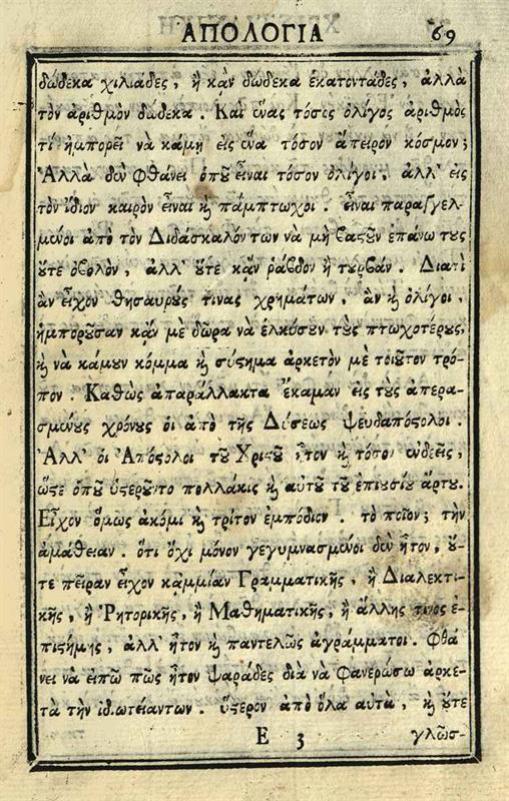 [Ἀθανάσιος ὁ Πάριος]. Χριστιανικὴ Ἀπολογία..., Κωνσταντινούπολη, Τυπογραφεῖο Πατριαρχείου Κωνσταντινουπόλεως, 1798.