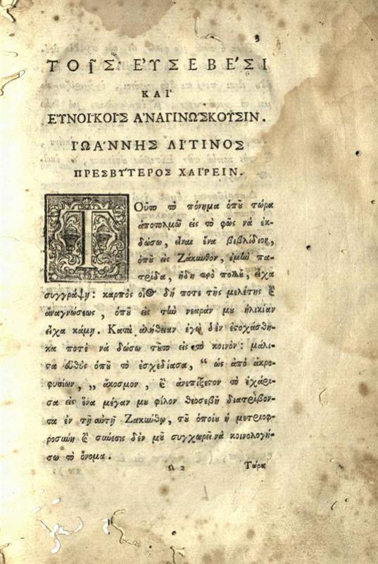 Ἰωάννης Λίτινος. Ἀσφαλὴς Ὁδηγία τῆς κατὰ Χριστὸν ἠθικῆς ζωῆς..., Παταύιο, Τυπογραφεῖο τοῦ Ἑλληνικοῦ Φροντιστηρίου Παταυίου, 1774.