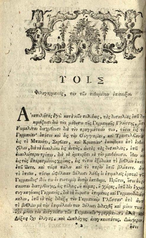 Μιχαὴλ Παπαγεωργίου. Πρόχειρος, καὶ Εὐπόριστος Διδάσκαλος, τῶν πρωτοπείρων ῾Ρωμελιτῶν, τῆς Γερμανικῆς Γλώσσης..., Πέστη, Τυπογραφία τοῦ Φρανκίσκου Πάτζκο, 1792.