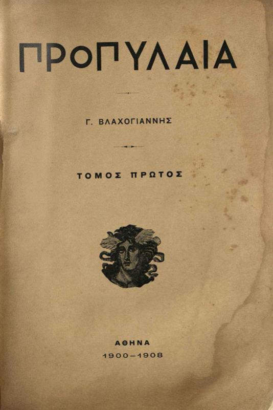 Προπύλαια, περιοδικό, διευθυντὴς Γ. Βλαχογιάννης, τόμος Α´ (καὶ μοναδικός), Ἀθήνα 1900-1908.