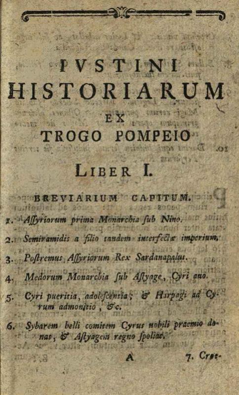 Marcus Iunianus Iustinus. Iustini Historiarum Libri XLIV... editio tertia..., Impensis Orphanotrophei, 1780.