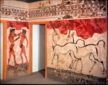Θήρα, τοιχογραφία, Δωμάτιο Β1, πυγμάχοι και αντιλόπες (γενική λήψη)