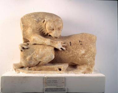 Μαρμάρινο ανάγλυφο σύμπλεγμα λιονταριού που σπαράσσει ελάφι