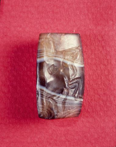 Μυκηναϊκός σφραγιδόλιθος από αχάτη με σκηνή ταυροκαθαψίων