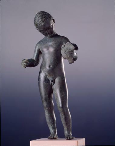 Χάλκινο αγαλμάτιο αγοριού που κρατά περιστέρι
