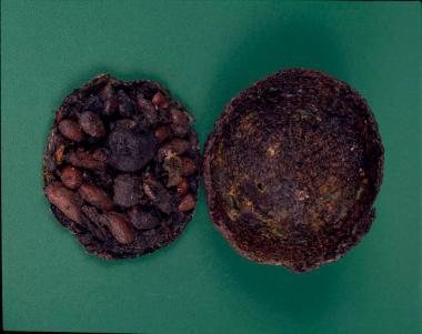 Πλεκτό καλάθι με αμύγδαλα, φουντούκια, σύκα και ρόδι.