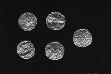 Πέντε χρυσά ελάσματα με στικτό ρόδακα