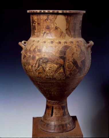 “Μηλιακός” αμφορέας με παραστάσεις Απόλλωνος και Αρτέμιδος και μονομαχία Αχιλλέως - Μέμνονος στο λαιμό.
