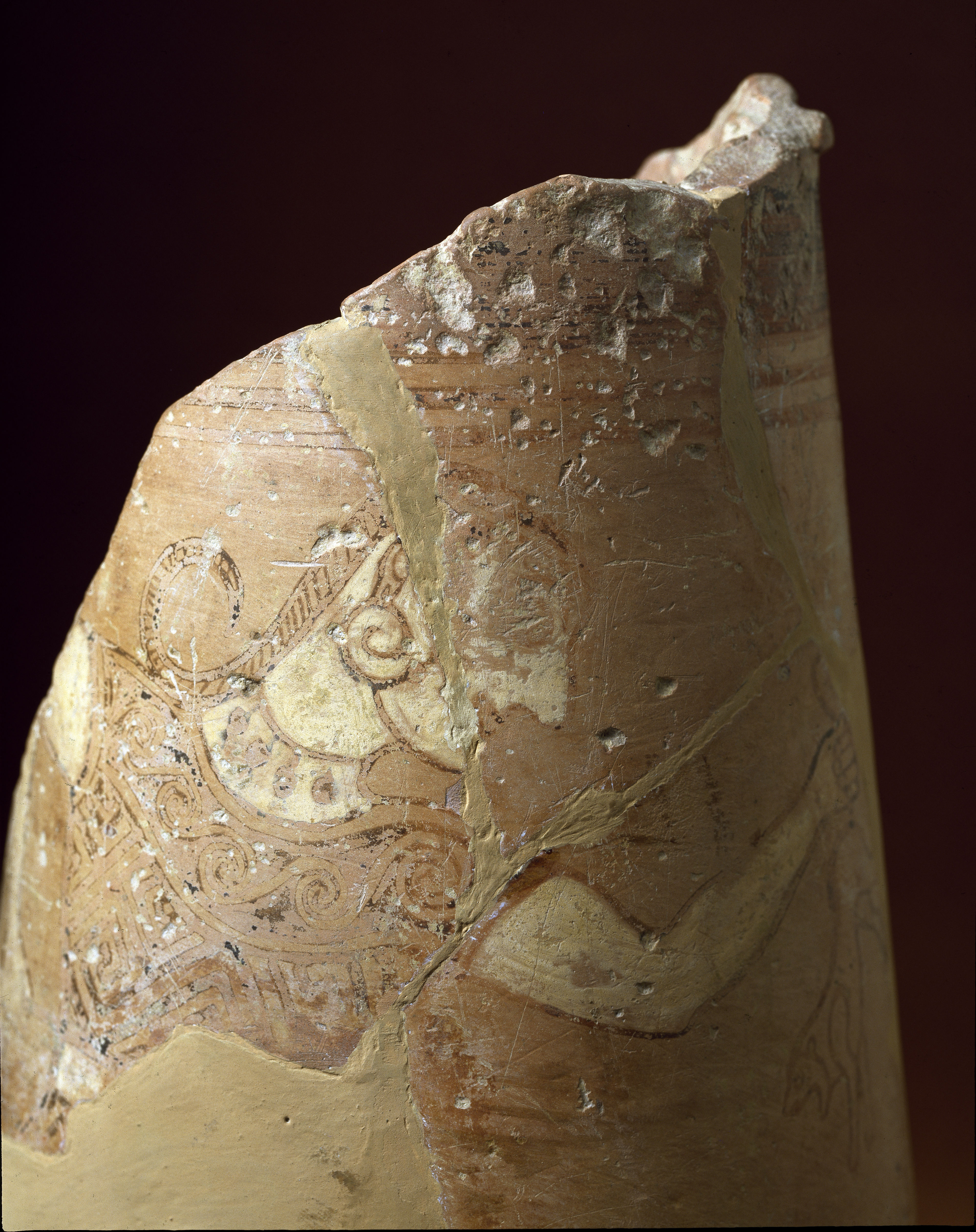 Στήριγμα αγγείου με παράσταση Αρτέμιδος που καταβάλλει πάνθηρα.