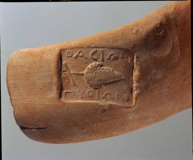 Δημητριάδα. Ενσφράγιστη λαβή αμφορέα της Θάσου από το ανάκτορο επωνύμου άρχοντος Πυθίωνος.