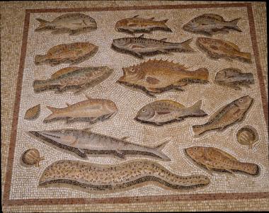 Λεπτομέρεια ψηφιδωτό δάπεδο με ψάρια
