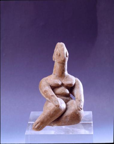 Πήλινο ειδώλιο καθισμένης γυναίκας. Από τα Φάρσαλα.