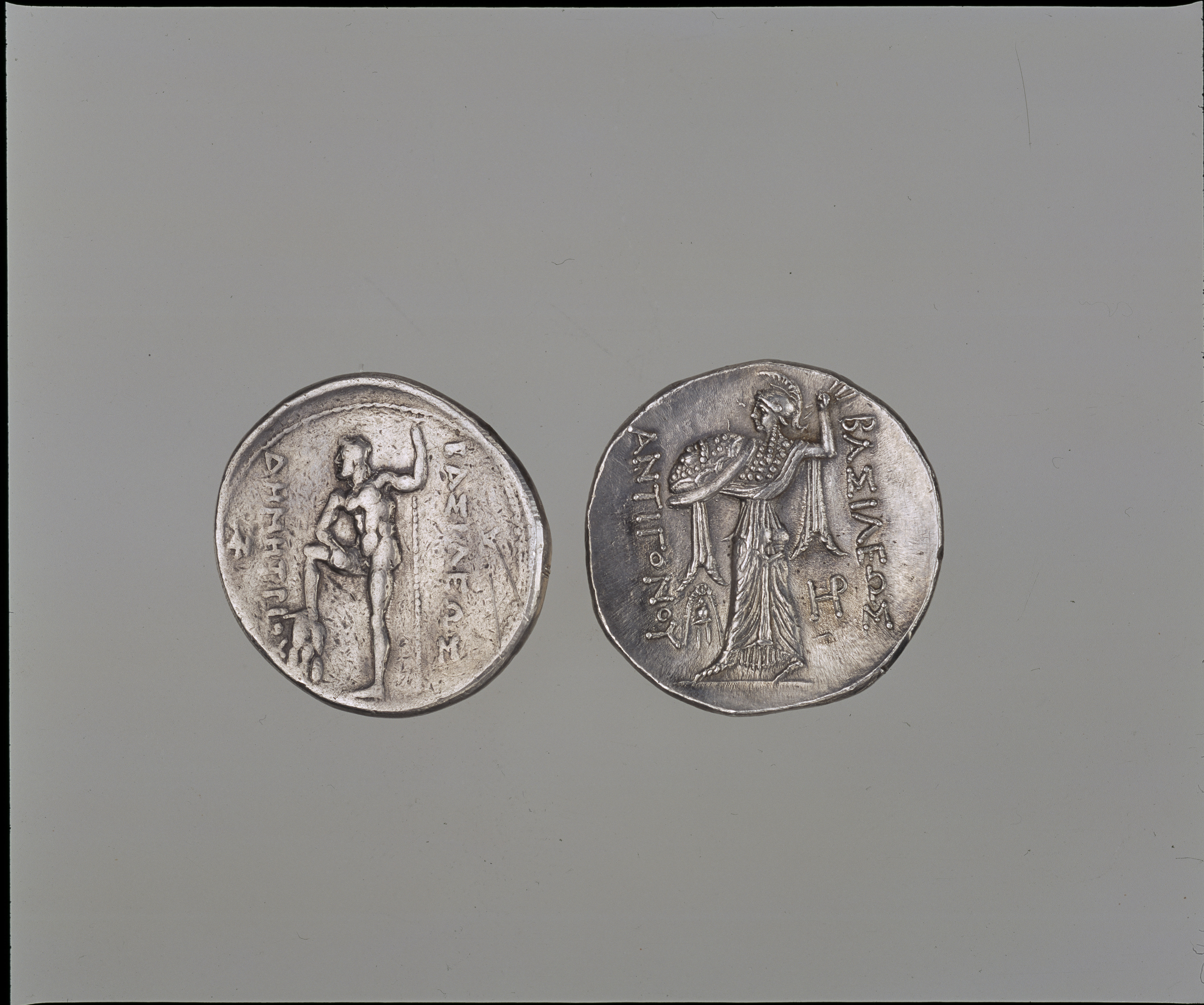 Αργυρά νομίσματα Δημητρίου Πολιορκητού και Αντιγόνου Γονατά.