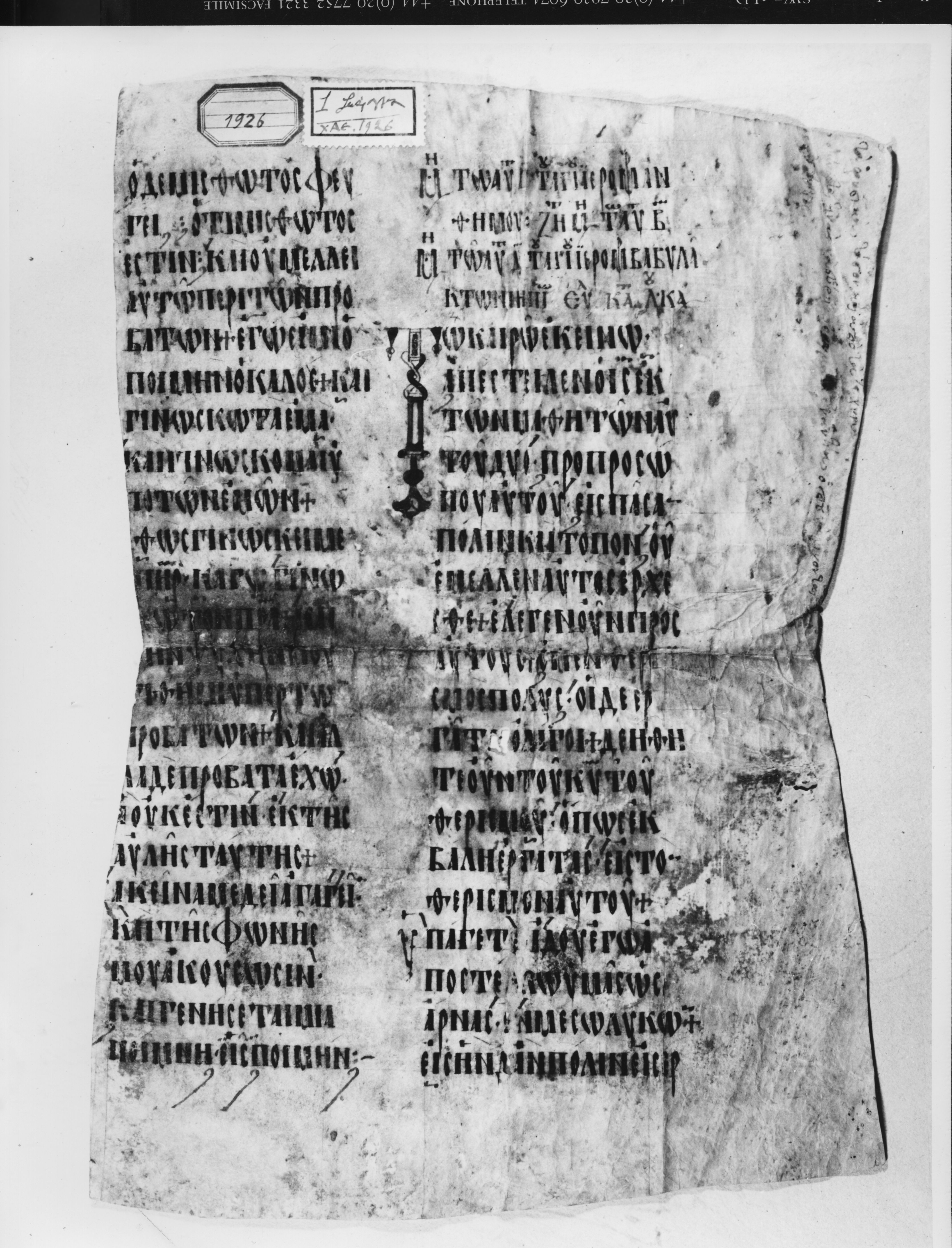 Φύλλο περγαμηνής από Ευαγγελιστάριο