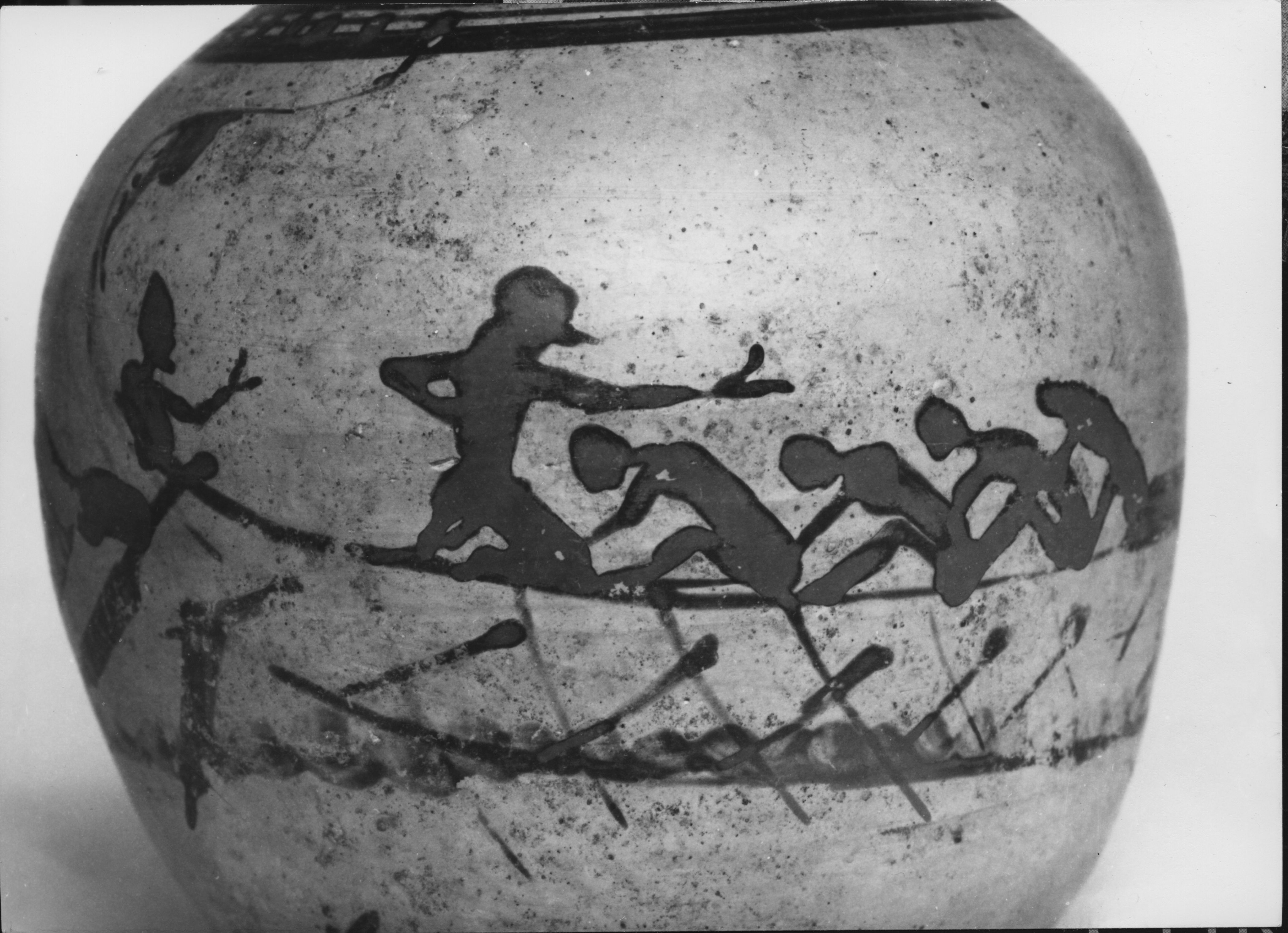 Κορινθιακός αρύβαλλος που απεικονίζει πλοίο με κωπηλάτες και δικέφαλη σειρήνα.