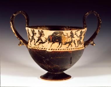 Μελανόμορφος κάνθαρος. Παράσταση κυνηγιού Καλυδώνιου κάπρου.