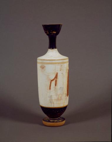 Λευκή λήκυθος. Νέος και γυναίκα στον τάφο. Ζ. του Sabouroff.