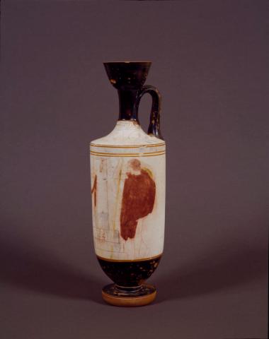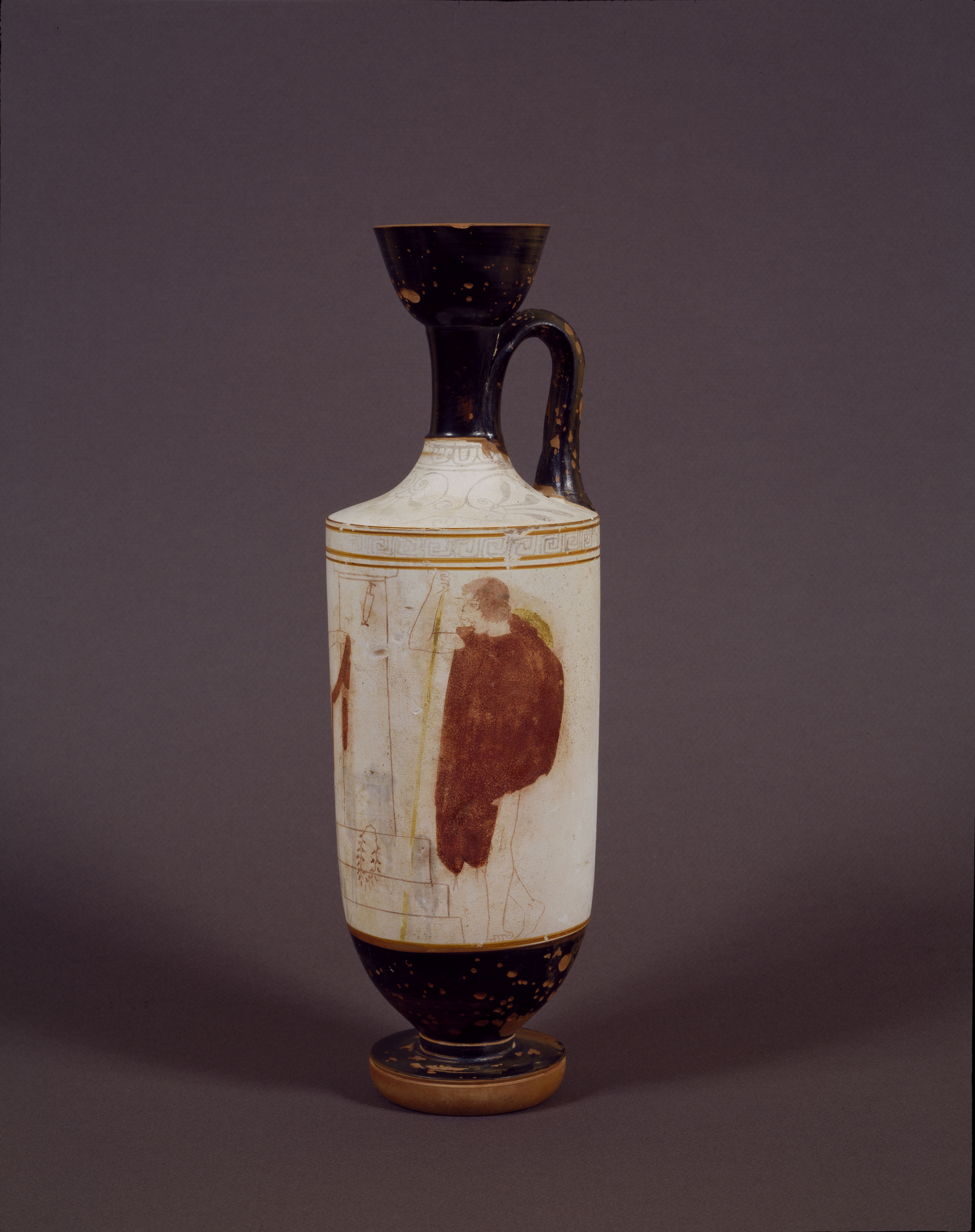 Λευκή λήκυθος. Νέος και γυναίκα στον τάφο. Ζ. του Sabouroff.