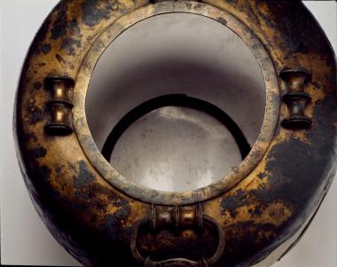 Χάλκινος ταφικός λέβης με επιγραφή. Έπαθλο νικητή αγώνων προς τιμή των νεκρών του Μαραθώνα. Λεπτομέρεια της επιγραφής Αθεναίοι άθλα επί τοις εν τοι πολέμο.