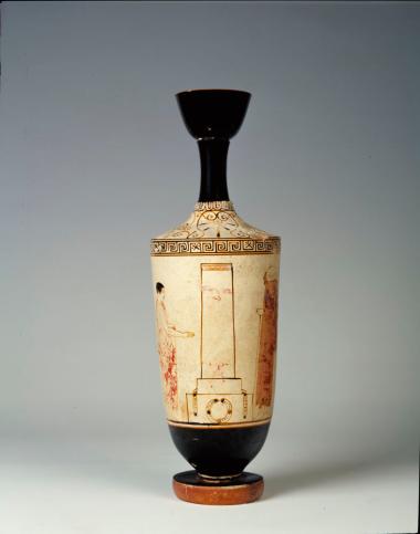 Λευκή λήκυθος με σκηνή επίσκεψης σε τάφο. Ζ. του Αχιλλέα. Μνημείο