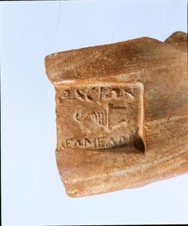 Δημητριάδα. Ενσφράγιστη λαβή αμφορέα της Θάσου από το ανάκτορο επωνύμου άρχοντος Λεωμέδοντος.