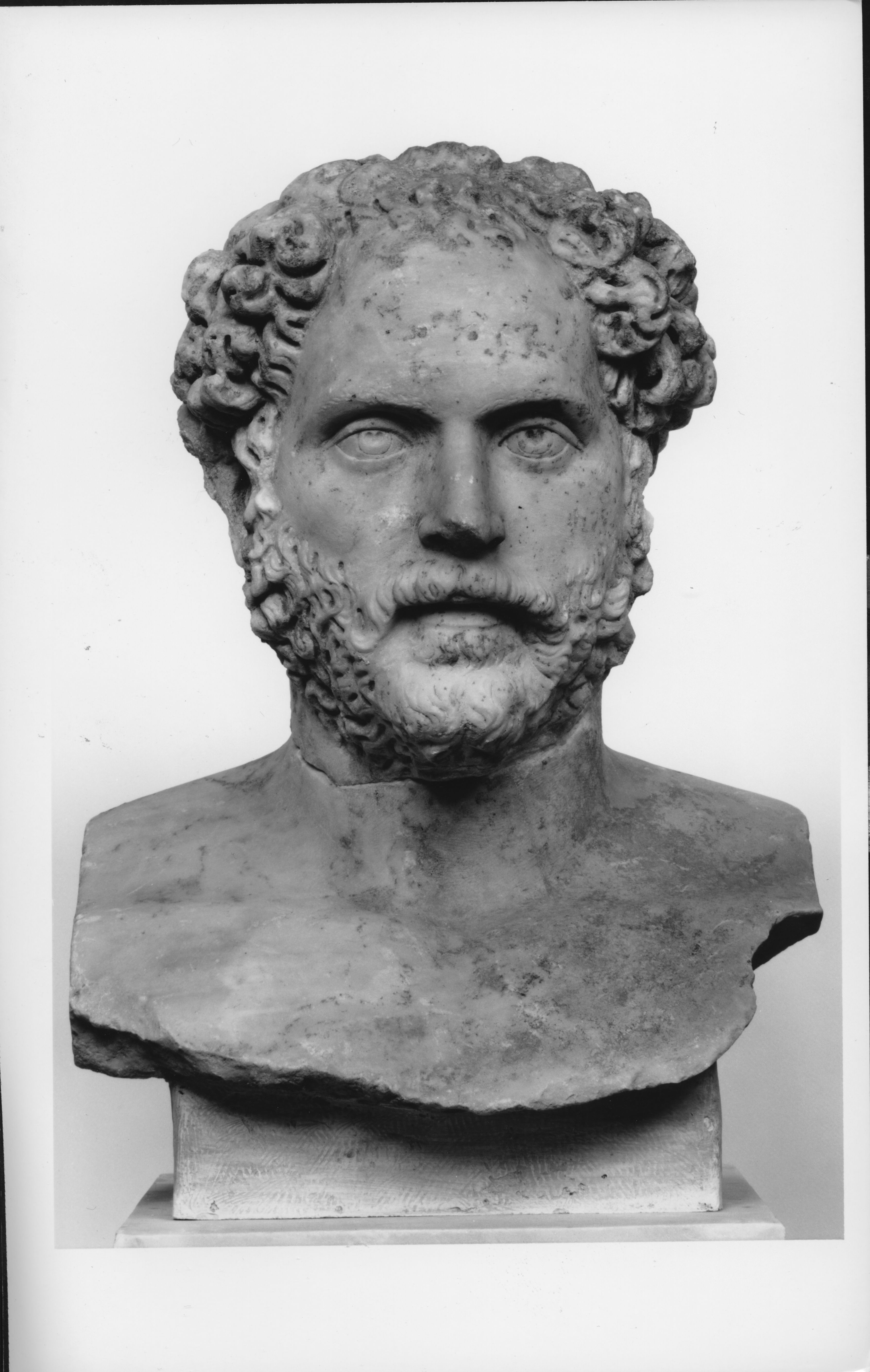 Εικονιστική κεφαλή κοσμητού με τμήμα ερμαϊκής στήλης